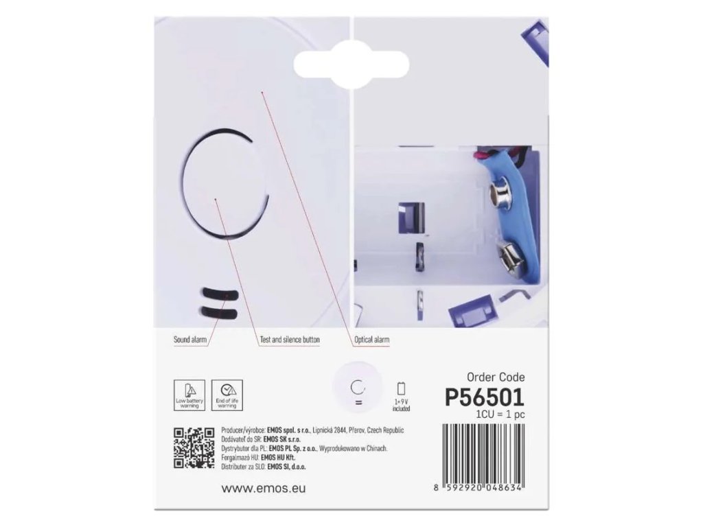 Každý detektor kouře obsahuje čidlo, které má omezenou životnost. Jakmile přijde jeho poslední hodinka, je nutné pořídit si úplně nový přístroj. EMOS GS536 vás udrží v bezpečí 10 let. Jestliže v průběhu zapomenete datum jeho expirace, připomene vám ho štítek na zadní straně – konkrétně nápis „zařízení nahradit:“.